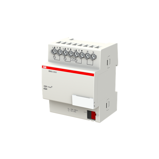 Energianmittausmoduulilla voidaan mitata energian (Wh) lisäksi m.m. teho, virta, jännite, taajuus ja tehokerroin (cosφ). Kanavien mittaustieto voidaan summata. Mittaustiedot siirretään KNX-väylässä. Väyläkaapeliliitin sisältyy toimitukseen.