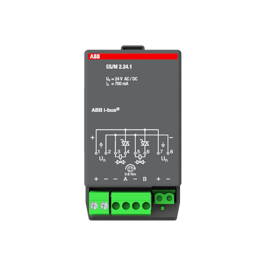 24 VAC/DC, max. 0,7 A. Kaksi elektronista äänetöntä ulostuloa ohjaamaan esim. venttiilejä.