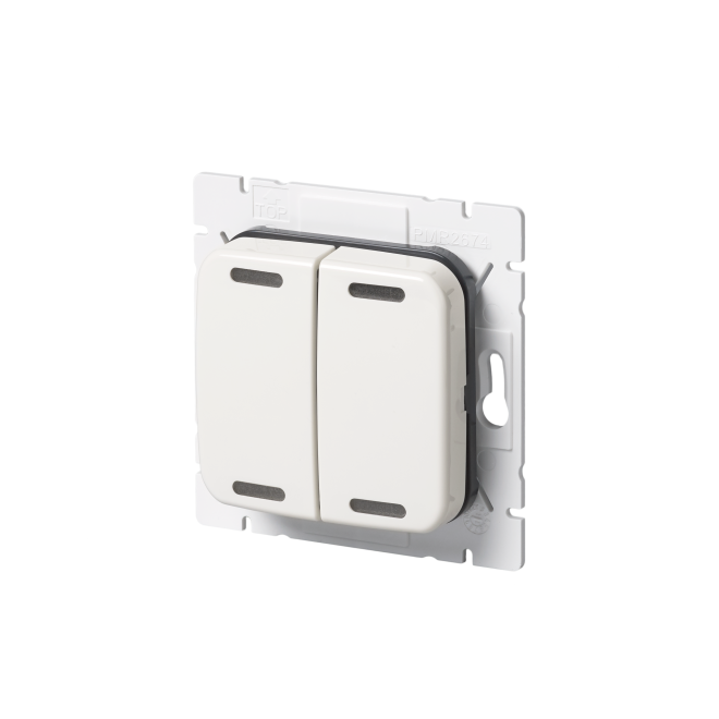 4-osainen painiketaulu jota voi käyttää myös 2-osaisena. Soveltuu esimerkiksi askelreleiden ohjaukseen tai elektronisten ohjausjärjestelmien painikkeeksi. Koskettimien kuormitettavuus on 1mA-1A / 5-24V ac/dc. Kullakin painikkeella erikseen kytkettävä valkoinen LED-merkkivalo jonka kirkkautta voi säätää portaittain. Voidaan asentaa pintaan sekä kojerasian päälle.