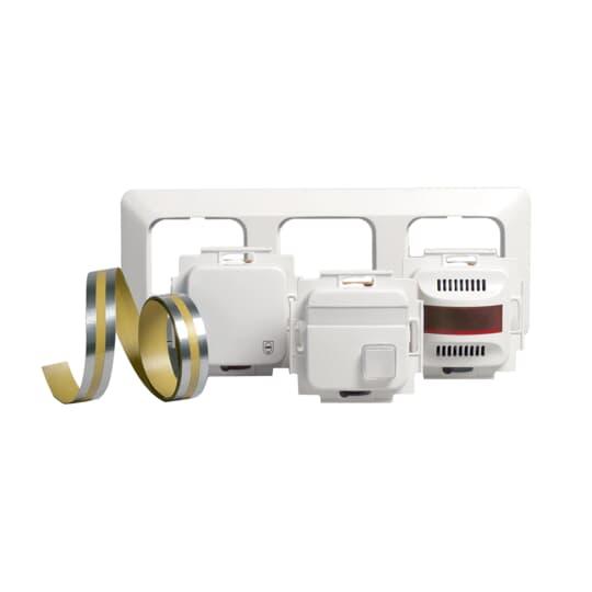 Pakettiin koostuu seuraavista Jussi merkinantotuotteista: 1 kpl kosteusvahti FEH2100, 1 kpl muuntaja FLM1000, 1 kpl hälytin FIM1200, 1 kpl teippianturi FLA2100.02 sekä 1 kpl 3-osainen peitelevy 2513 ja asennusohje.