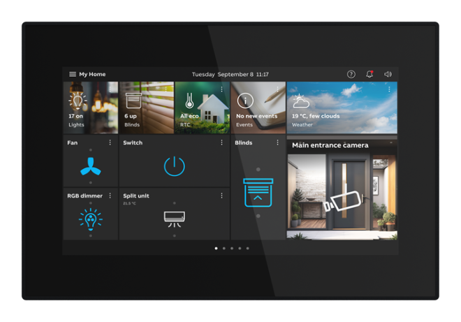 Hallitse kotisi laitteita keskitetysti ja etänä. System Access Point -integroitu OneTouch mahdollistaa helpon yhteyden ABB:n ovipuhelin- järjestelmiin, ABB-free@home®- langattomiin laitteisiin ja Matter- yhteensopiviin laitteisiin, kaikki yhdessä kosketuspaneelissa. Se voidaan myös liittää ABB-free@ home®-järjestelmään.