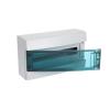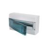 Moduulikotelo, 1 riviä, 18 moduulia. Läpinäkyvä petroolin sininen ovi.