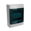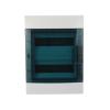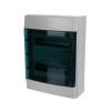 Moduulikotelo, 2 riviä, 24 moduulia. Läpinäkyvä petroolin sininen ovi.