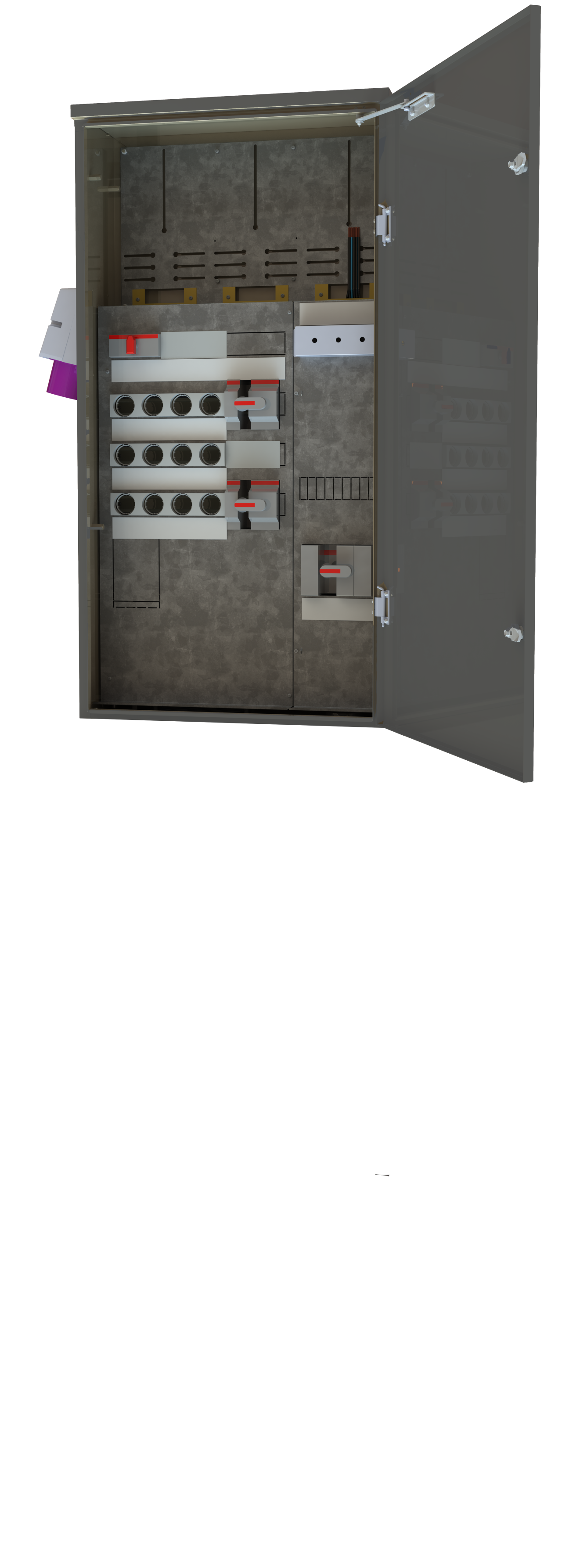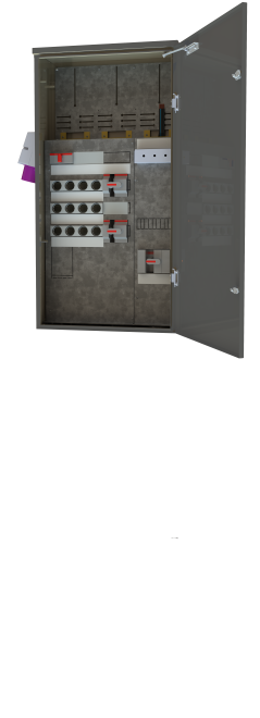 Maatilakeskus 620x1200x260mm, jossa on asennettuna tyyppi 2:n ylijännitesuojat