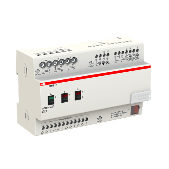 Huoneohjain RM/S1.1 soveltuu esim. pienen huoneiston tai hotellihuoneen toimintojen ohjaamiseen. Huoneohjaimessa on 8 kpl potentiaalivapaita binäärituloja, 3 kpl relelähtöjä, 3 puhallinlähtöä ja 4 venttiilienohjauslähtöjä.