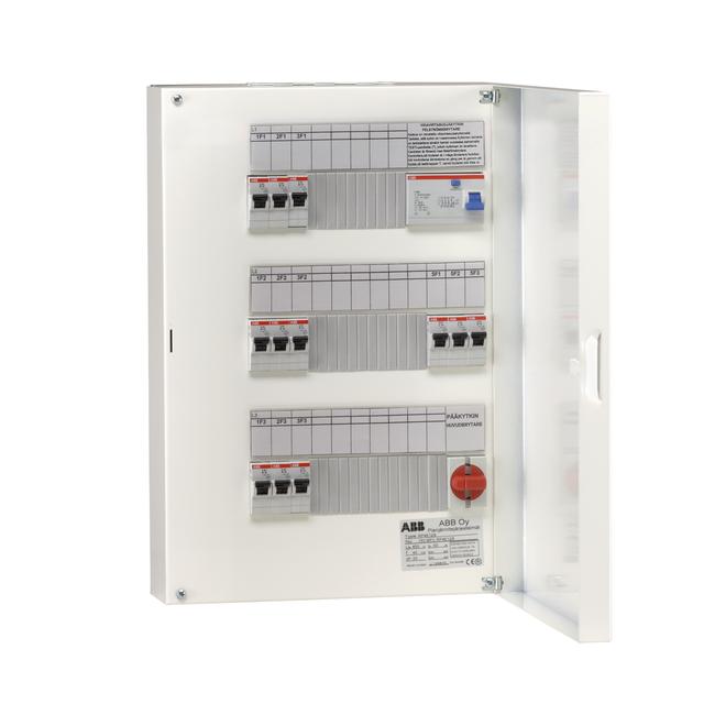 1kpl 40A 4-napainen vikavirtasuojakytkin. 12kpl jousiliitäntäistä johdonsuojakatkaisijaa. 17-mod varatilaa. Sisältää oven. Värisävy RAL9010.