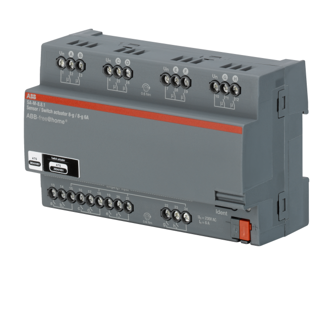 Laite on Din-kiskoon asennettava laite. Laitteessa on kahdeksan binäärituloa sekä kahdeksan 6A kytkentälähtöä. Binäärituloja voidaan käyttää liitäntöinä free@home-laitteiden käyttöön potentiaalivapailla painikkeilla tai binäärisignaalien lukemiseen. Väyläjännitteen päällekytkemisen jälkeen kytkentälähtöjä voidaan kytkeä toisistaan riippumatta muista väylään kytketyistä antureista riippuen (esim. binääritulojen kautta kytketyt painikkeet).