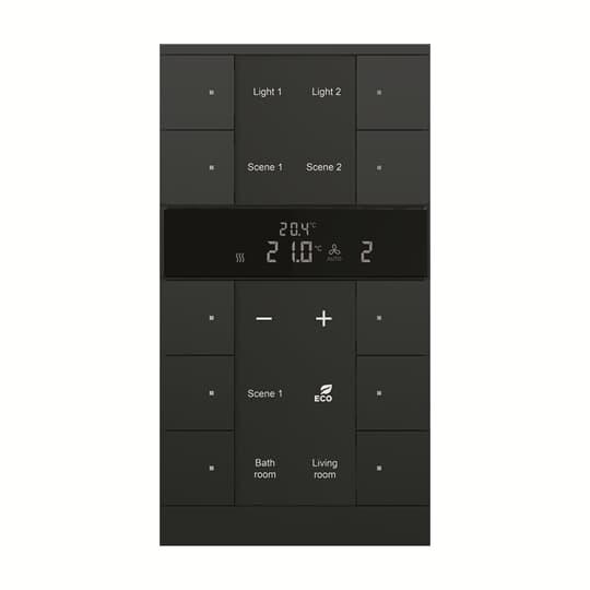 10-osainen painiketaulu huonetermostaatilla, Tenton, matta musta