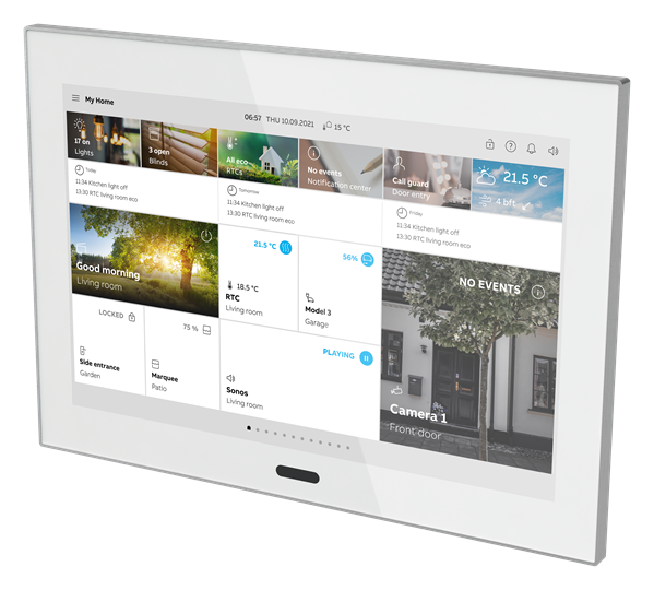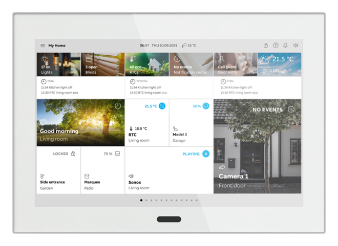 10" ohjauspaneeli nykyaikaisella käyttöliittymällä asuin- ja liikerakennuksiin. SmartTouch 10" toimii kolmessa eri järjestelmässä KNX, free@home ja ABB-Welcome yhdistäen automaation ja ovipuhelimen samaan näyttöön.