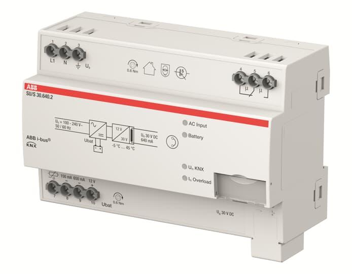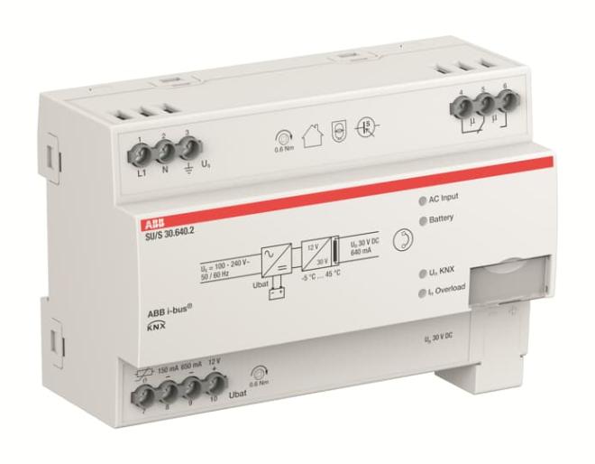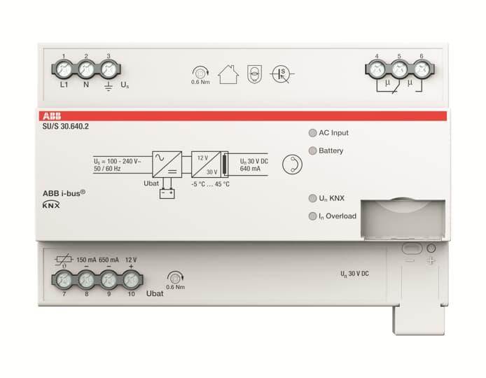 Katkoton KNX teholähde 640 mA integroidulla kuristimella KNX-väylän syöttämiseen, oikosulku- ja yli-kuormituskestävä.