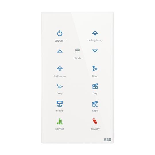 Litteä lasipintainen painiketaulu kapasitiivisella kosketuksella. ABB tacteo® on saatavana joko valkoisena tai mustana ja merkinnät ovat yksilöllisesti muokattavissa ennen tilausta. Värinvalinta ja merkintöjen muokkaus tapahtuu internetissä, Tacteo-konfiguraattorissa, jossa jokaiselle toiminnolle on määritettävissä teksti ja/tai symboli. Omalle konfiguraatiolle syntyy ID-numero mitä on mainittava tilauksessa.