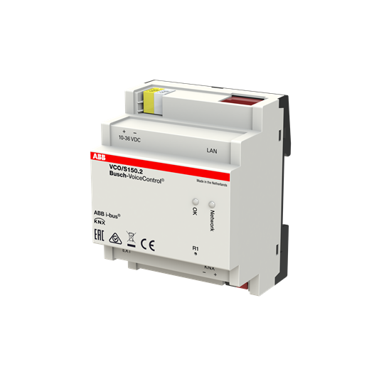 Laite toimii yhdyskäytävänä KNX-järjestelmän ja Alexa-, Apple Homekit- ja Google Assistant-sovelluksien välillä. Enintään 150 kpl KNX-järjestelmän toimintoa on ohjattavissa ja luettavissa Alexa-, Apple Homekit- ja Google Assistant-sovelluksista. KNX VoiceControl on sertifioitu Apple homekit laite. Laite asennetaan vaakaan DIN-kiskoon (4 moduulia) ja tarvitsee toimiakseen KNX-väylän, apujännitteen 5-36 VDC (SELV) ja LAN-verkon internetyhteydellä. Käyttöönotto tapahtuu verkossa ABB MyBuildings portaalin kautta.