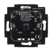 DALI-potentiometriä 2116/11U-xxx käytetään valaistuksen ohjaukseen yhdessä DALI-käyttölaitteiden kanssa standardin IEC 62386 mukaisesti. Potentiometrilla voidaan säätää DALI-valaisimien kirkkaustasoa ja laitetyypin 8 valaisimien LED:n valkoisen värin värilämpötilaa ( 2700-6500 K). 9 eri huomiovalon väria ja kaksi kirkkaustasoa. DALI-potentiometrin 2116/11U-xxx kanssa ei saa yhdistellä muita DALI-ohjauslaitteita. Jussi ja Impressivo valkoinen versioissa peitelevyt toimitetaan kojeen mukana.