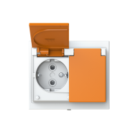 - Maadoitettu 1-osainen pistorasia läppäkannella, IP21