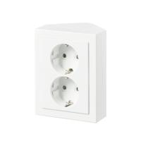 2-osainen pistorasia, joka voidaan asentaa kulmaan sekä pysty- että vaaka-asentoon. Pistorasiassa on jousiliittimet kutakin kosketinta kohden ja niihin voi kytkeä max. 4 johtoa. Liittimet on hyväksytty ML- ja MK-johtimille. Ei lisäliittimiä.