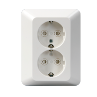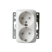 - Maadoitettu 2-osainen pistorasia peitelevyllä, jousiliittimin, IP21