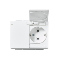 - Maadoitettu 1-osainen pistorasia läppäkannella, IP21